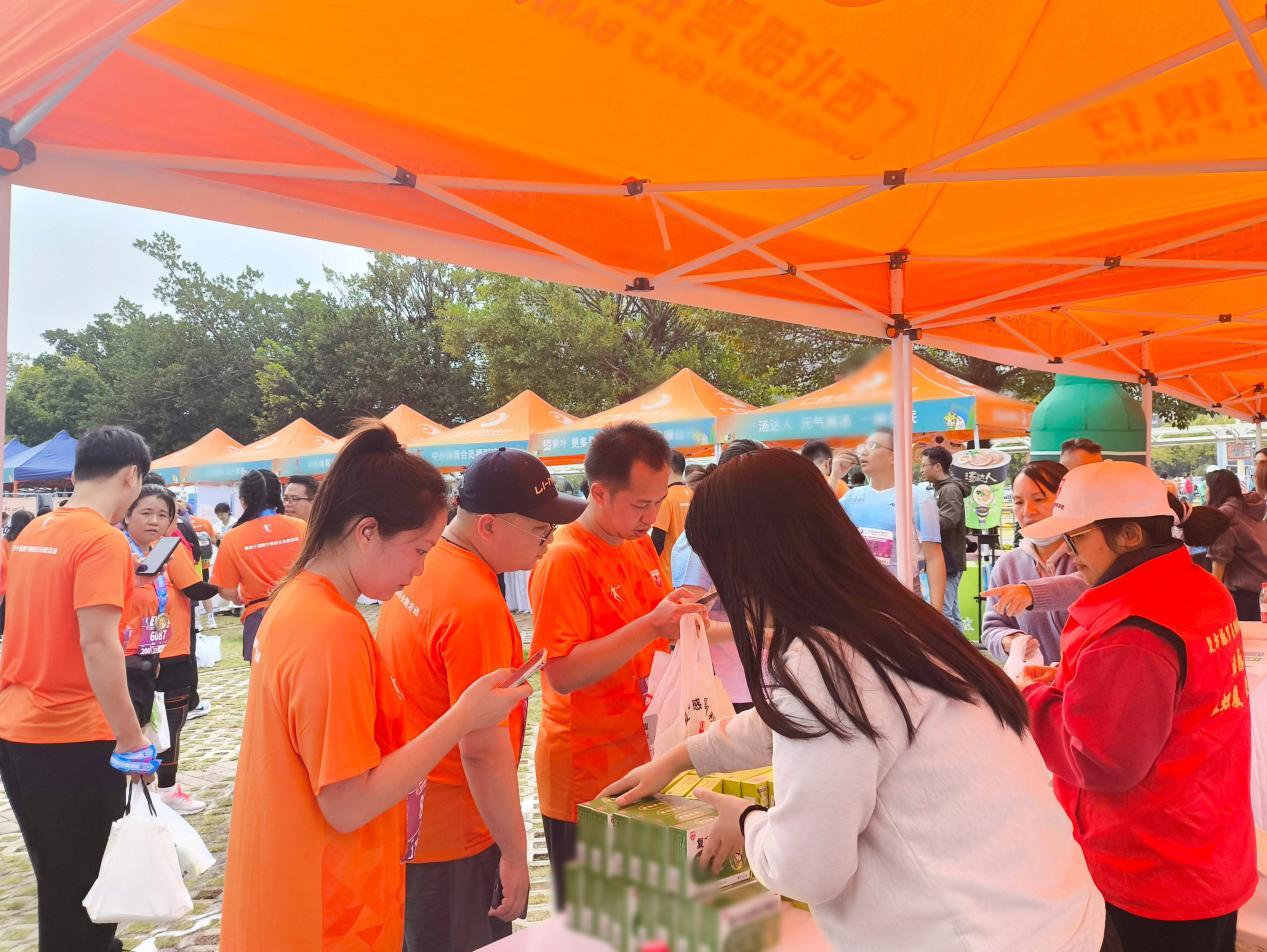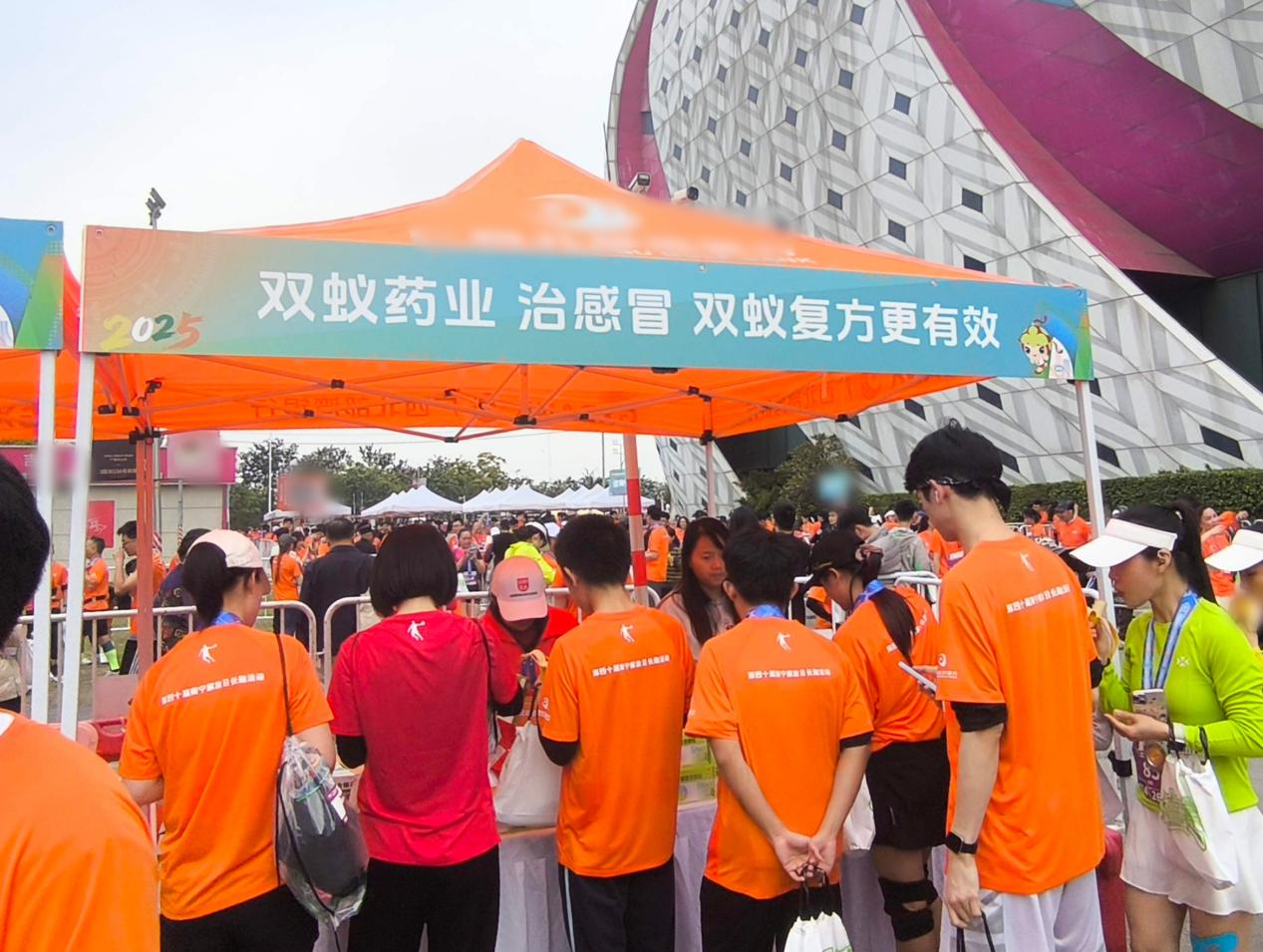 本次活動(dòng)中,雙蟻藥業(yè)在賽事領(lǐng)物區(qū)設(shè)立的展位格外引人注目,成為跑友們聚集的熱門打卡點(diǎn)。展位前,“中藥材辨識(shí)”“分享集贊贏好禮”等互動(dòng)環(huán)節(jié)創(chuàng)意滿滿,吸引大量跑友駐足參與,現(xiàn)場(chǎng)氣氛持續(xù)高漲。而可愛萌動(dòng)的吉祥物“壯壯”與“美美”更是人氣焦點(diǎn),引得跑友紛紛合影留念,歡聲笑語貫穿始終。